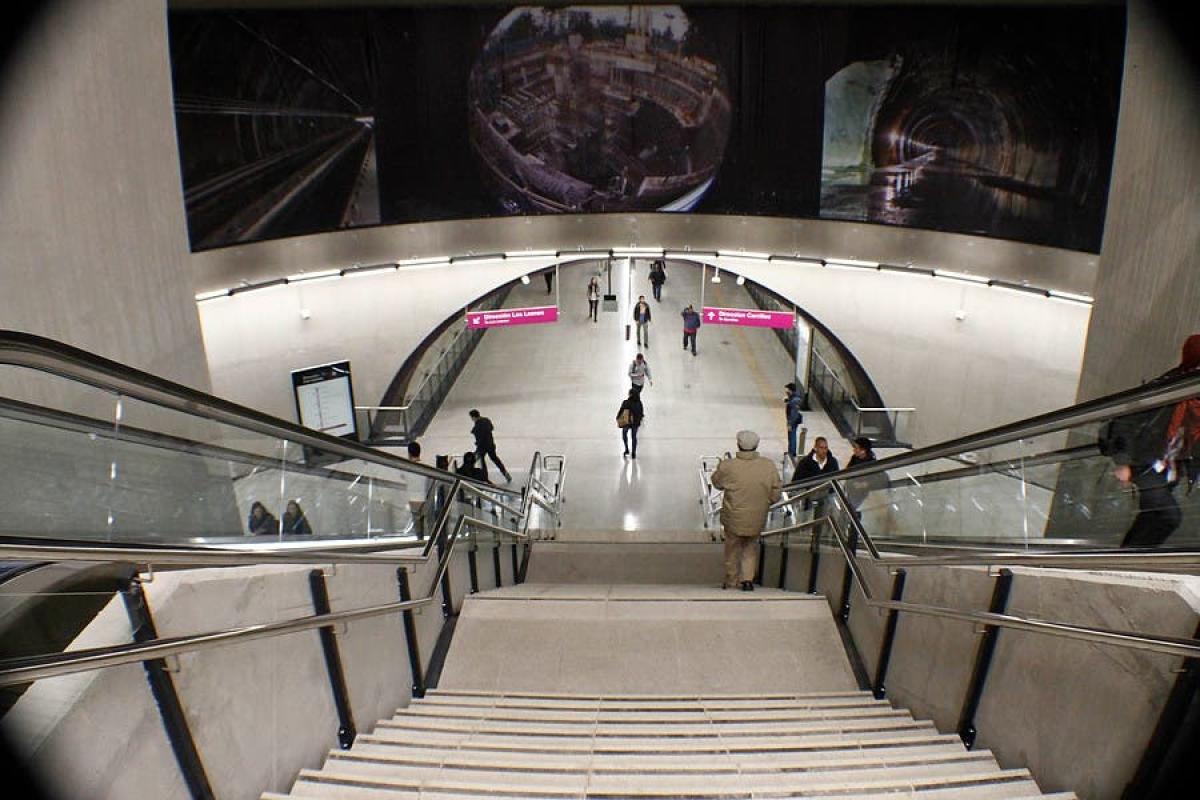 Al entrar todos los usuarios sacan sus teléfonos celulares, graban y fotografían todo. Sonríen, se abrazan, se saludan y les dan las gracias a los guardias. El túnel tiene olor a pintura, aún mantiene lugares que están tapados con mallas y la publicidad no existe en este espacio. Son aproximadamente tres pisos los que hay que descender para llegar al andén, ahí se topa con una muralla de vidrio con puertas automáticas, las que se abrirán justo cuando el tren se detenga.