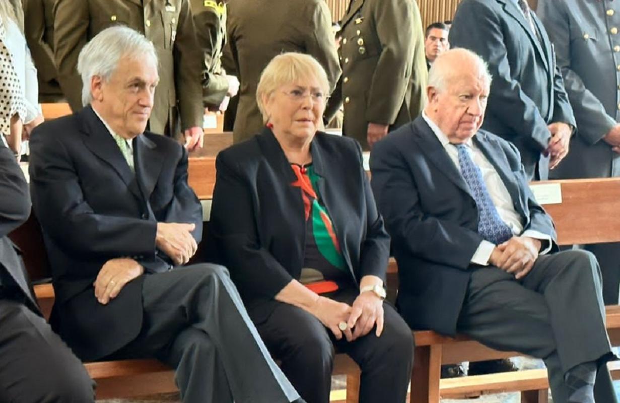 Cedida - Expresidentes Piñera, Bachelet y Lagos en responso de cabo asesinado