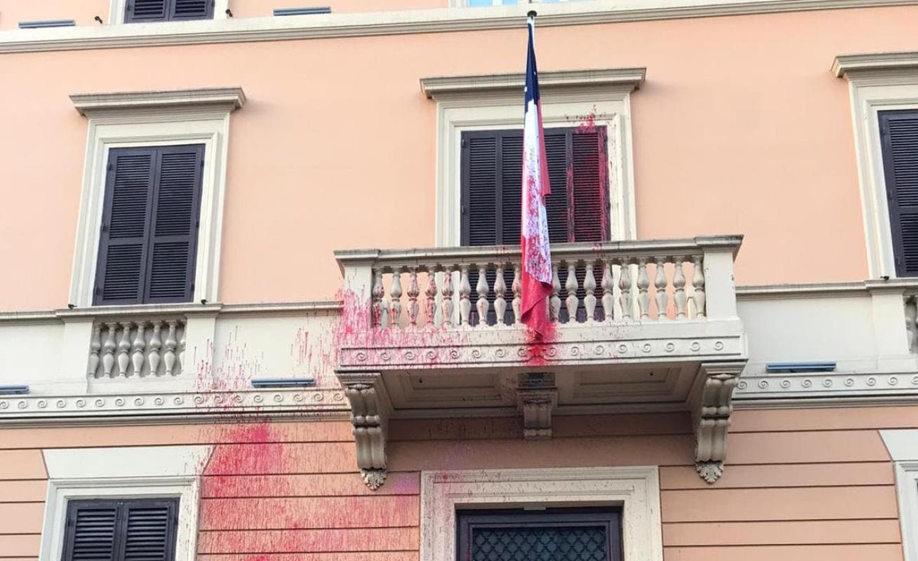 [FOTOS] Atacan frontis de la embajada chilena en Roma con pintura roja