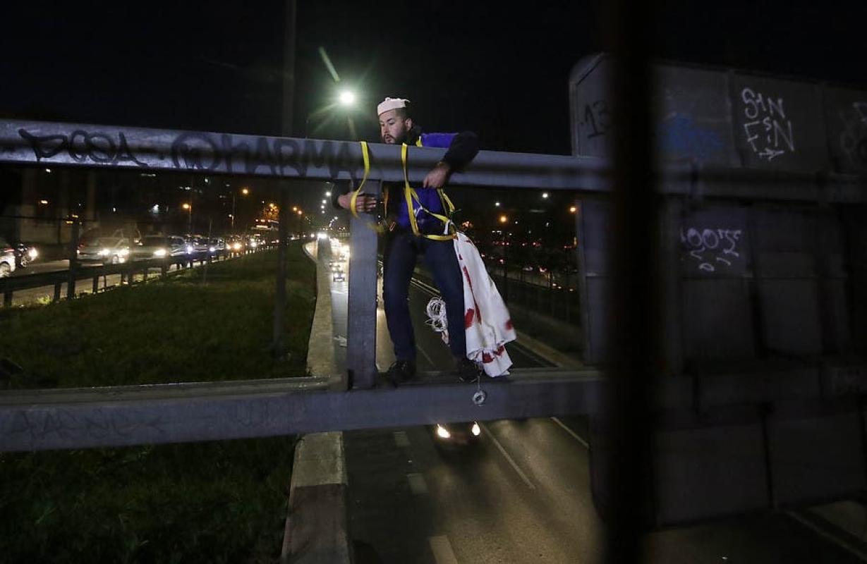 Al lugar llegó personal del Grupo de Operaciones Policiales Especiales (GOPE) de Carabineros, quienes dialogaron con el manifestante y lograron que se bajara de la señalética de forma pacífica.