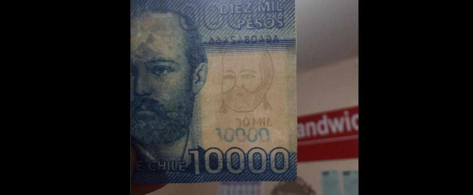Los billetes, en los que se ve unos dibujos demasiado alejados de la realidad de los personajes Arturo Prat y Andrés Bello al ponerlos a contraluz, dejan ver la burda estafa de la que fue víctima el padre de la estudiante que denunció el hecho.