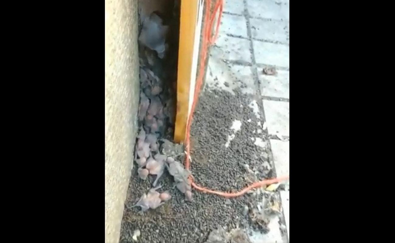 Un nido de murciélagos fue captado durante la tarde de este viernes en la intersección de calles Santo Domingo con Miraflores en pleno centro de Santiago.