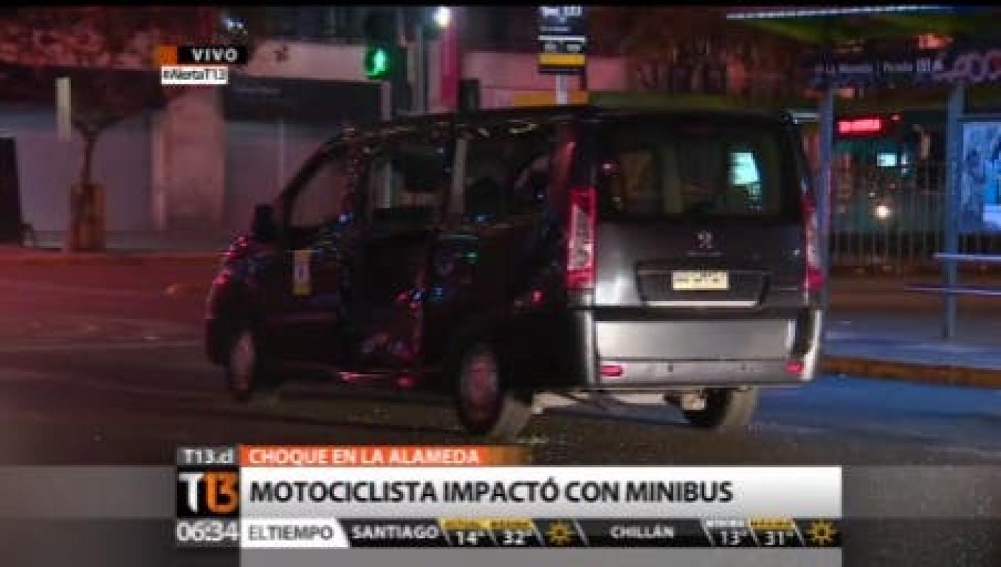 Durante esta madrugada se vivió un accidente entre un mini bus y una moto en plena Alameda con Lord Cochrane, en dirección hacia el norte.