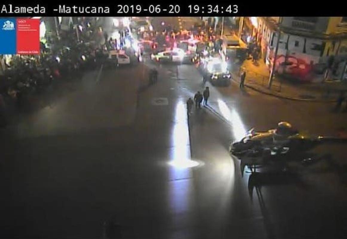 Ambas calzadas de la Alameda (los accesos al poniente entre Manuel Rodríguez y Matucana, y al oriente entre Radal y Exposición) se mantuvieron cerradas debido a la emergencia, siendo restablecido el tránsito tres horas después.
