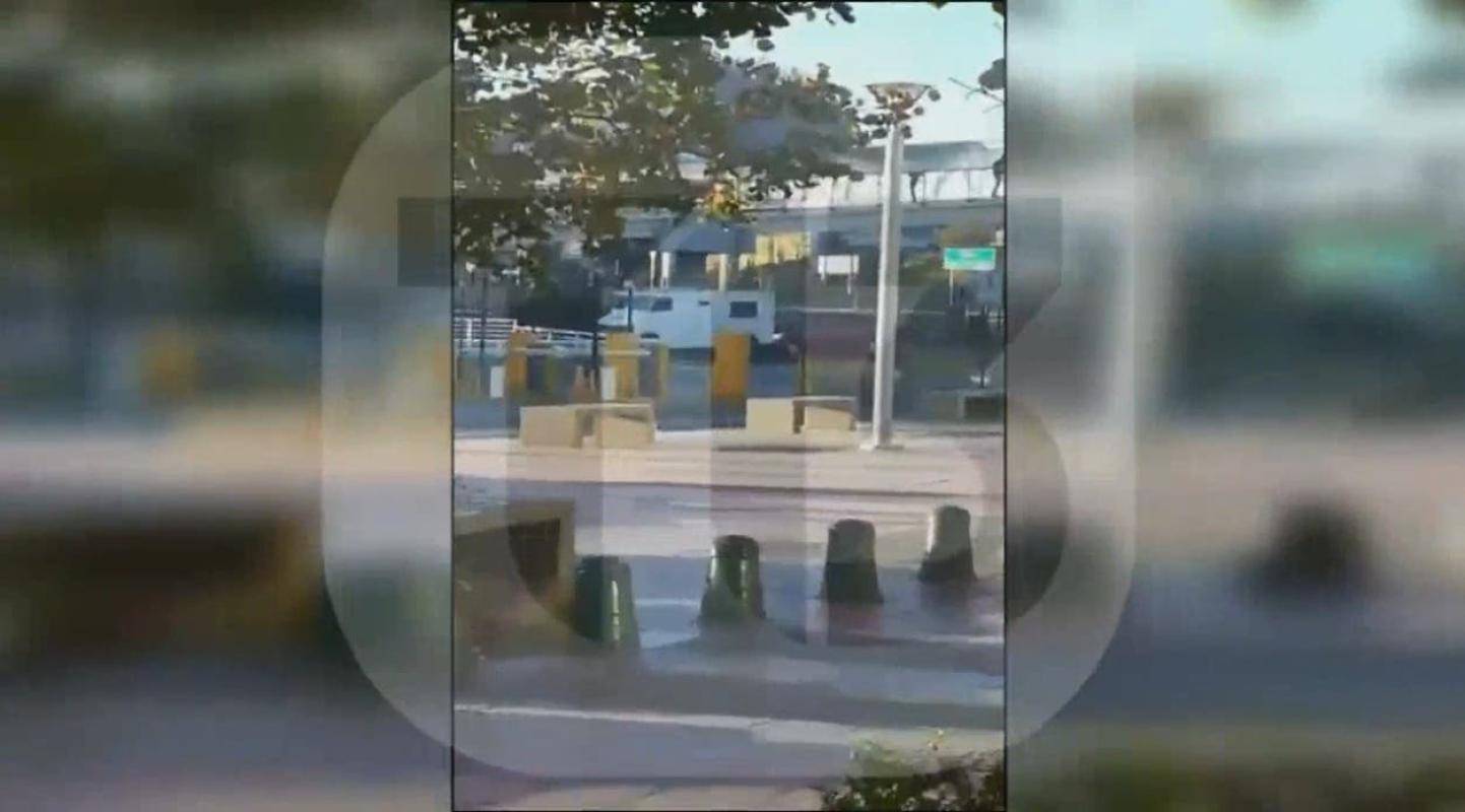 Un video muestra el momento exacto en que un grupo de delincuentes interceptó un camión de valores en las inmediaciones del Mall Plaza del Trébol en la comuna de Talcahuano, Región del Biobío.