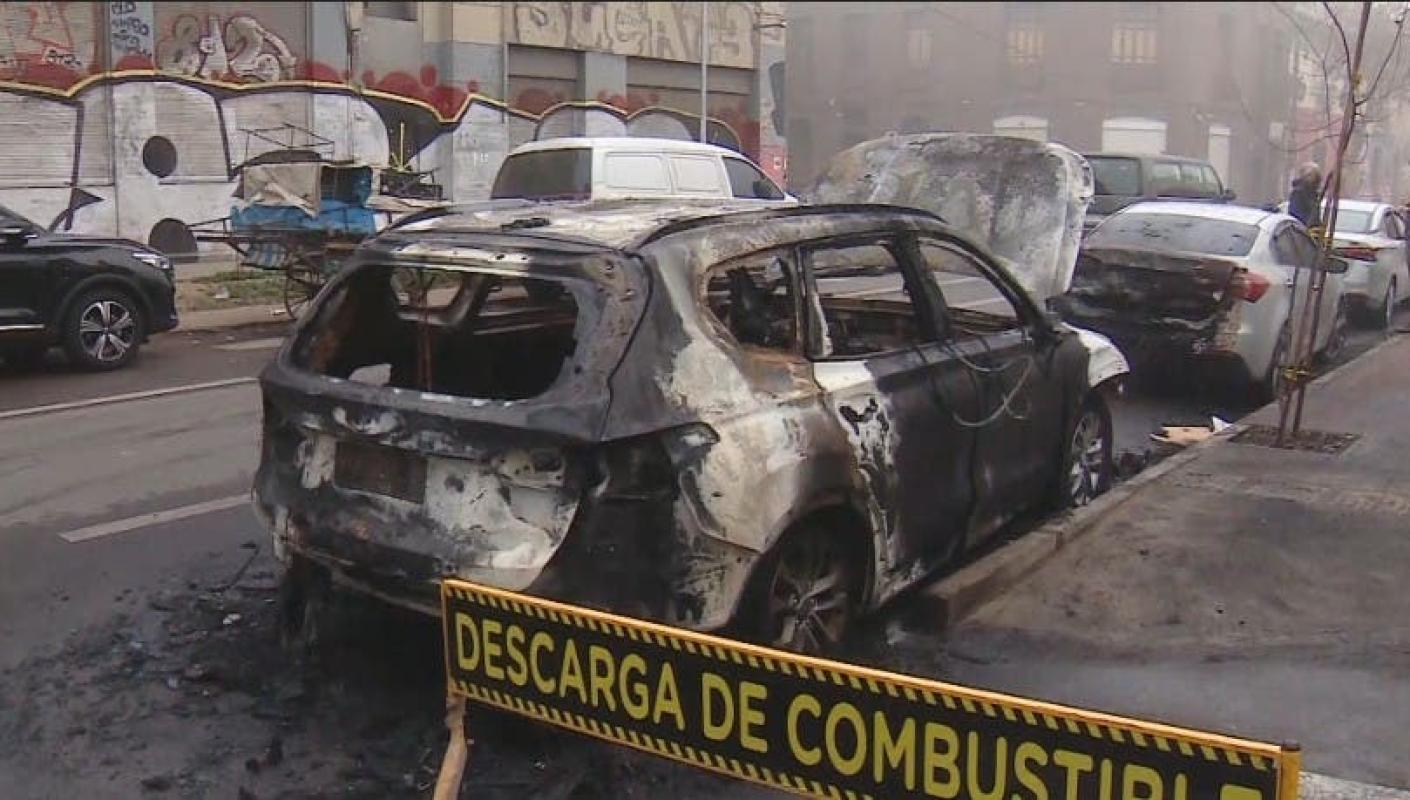 Le lanzaron objeto incendiario: Auto particular fue quemado en centro de Santiago
