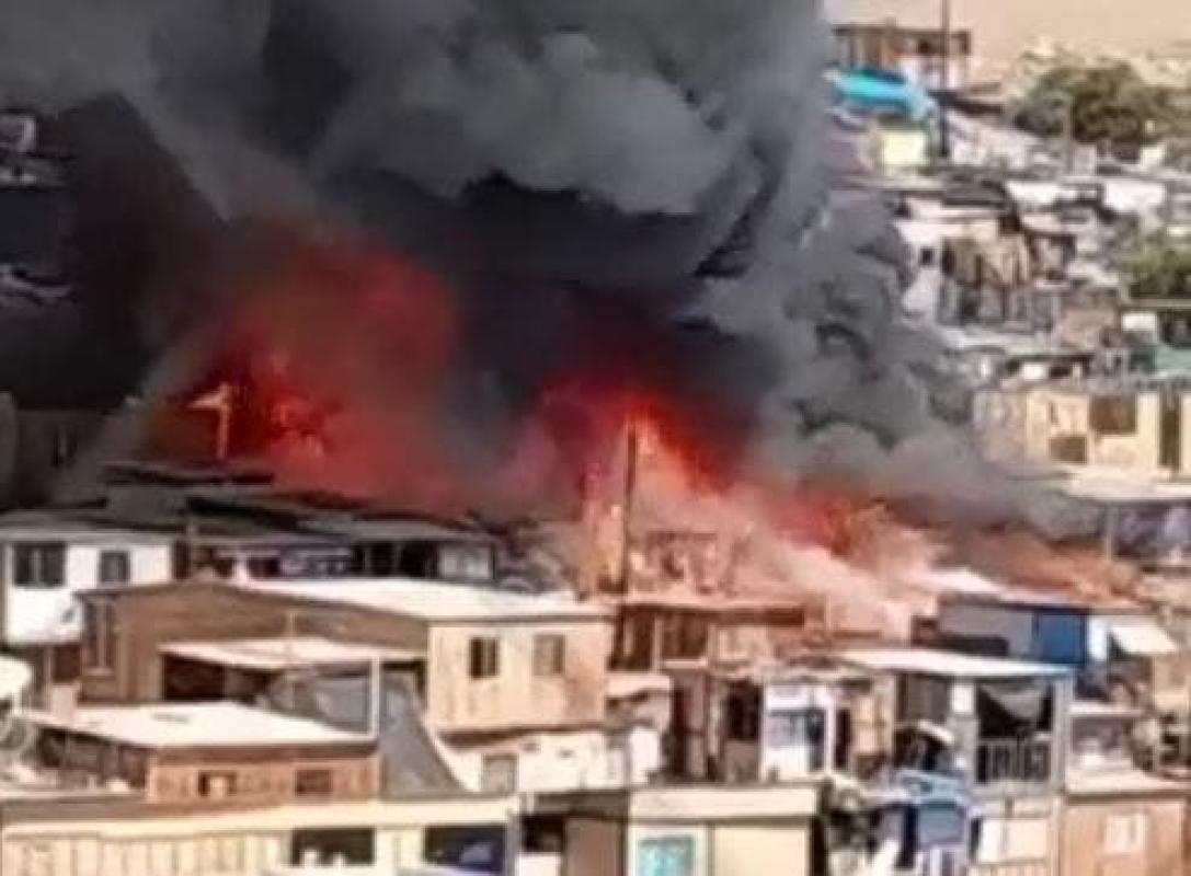Un incendio se produjo la tarde de este lunes en el campamento Laguna Verde de Iquique, en la región de Tarapacá.