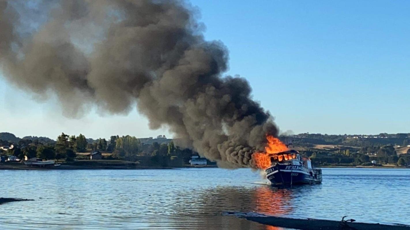 Incendio consume embarcación mientras cruzaba el canal Dalcahue