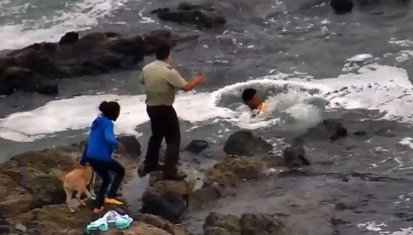 Tras la caída del sujeto y el hundimiento por unos segundos del bebé en el mar, el personal del GOPE actuó y logró arrebatar el lactante de manos de su padre.