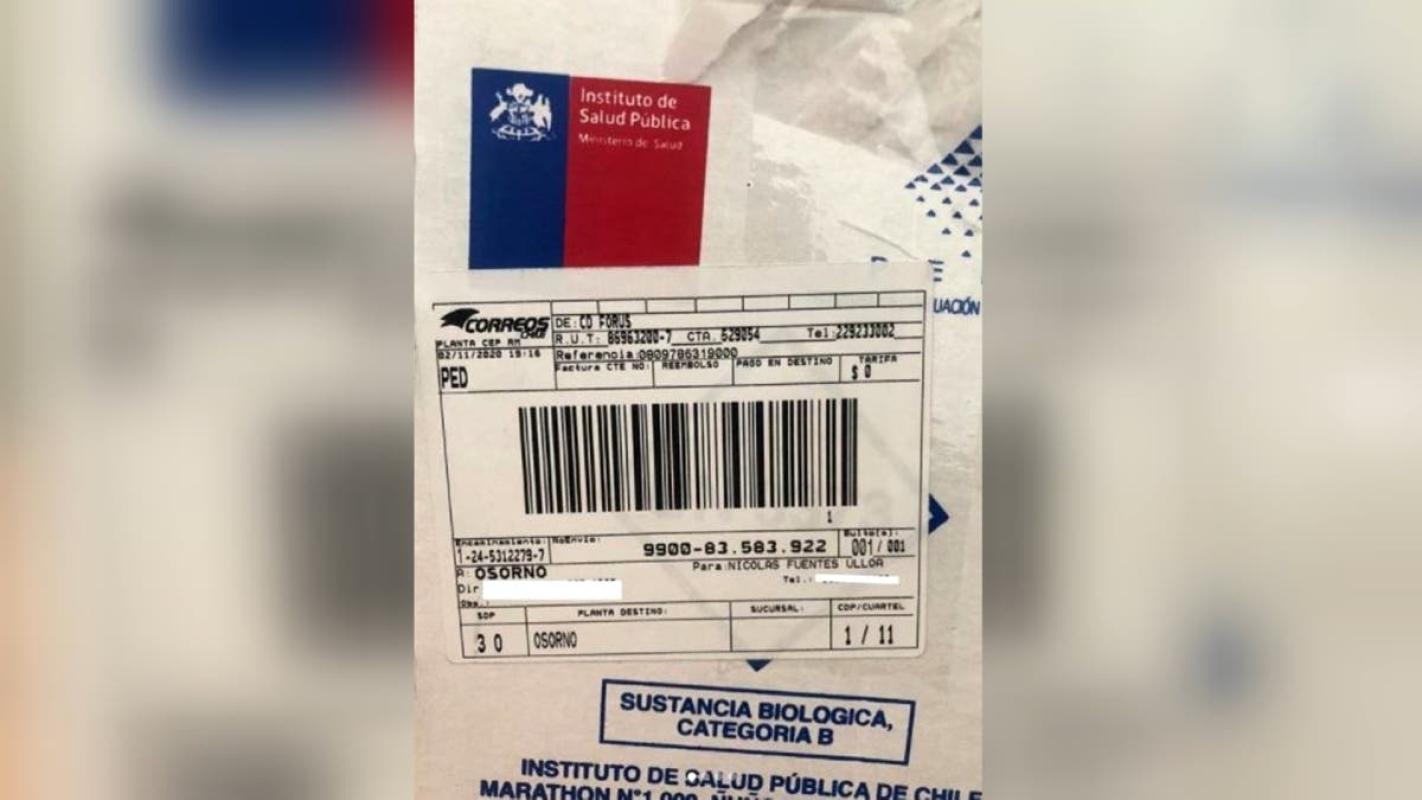 “Compré por internet unas zapatillas Columbia. Me mandaron el código de rastreamiento y llegó a mi casa una caja del ISP desde el Laboratorio Clínico del Hospital de Chaitén con nada menos que una 'muestra de sangre humana o derivados' para evaluación de inmunología básica, según dice dentro de la caja”, contó Nicolás Ulloa a través de Instagram.