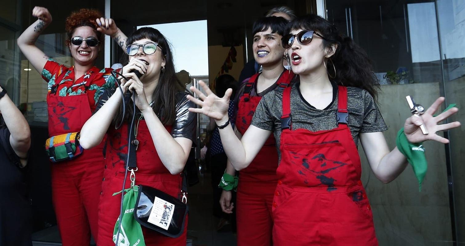 Todo comenzó como una obra teatral que se estrenaría el 24 de octubre, pero a raíz de las protestas nunca vio la luz. Esta obra incluía la canción "Un violador en tu camino", la que se presentó en el Día Internacional de la Eliminación de la Violencia contra la Mujer.