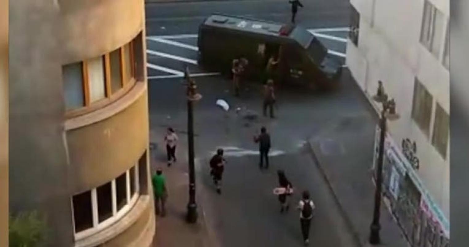 Un grupo de entre 20 a 30 encapuchados agredieron la tarde del jueves a un cabo segundo de la Escuela de Suboficiales de Carabineros en el centro de Santiago.