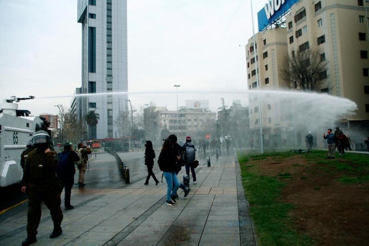 Pese a que los vehículos particulares pudieron pasar por el lugar, el transporte público desvió su recorrido para evitar acercarse al sector en el que actuó el carro lanzagua de Carabineros.