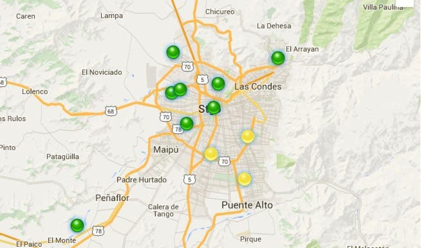 En este momento, según se aprecia en el mapa de la calidad del aire del Ministerio del Medio Ambiente, la mayoría de las comunas de la región Metropolitana presentan condiciones "buenas" y tres están en un estado de regular: La Florida, Puente Alto y El Bosque.