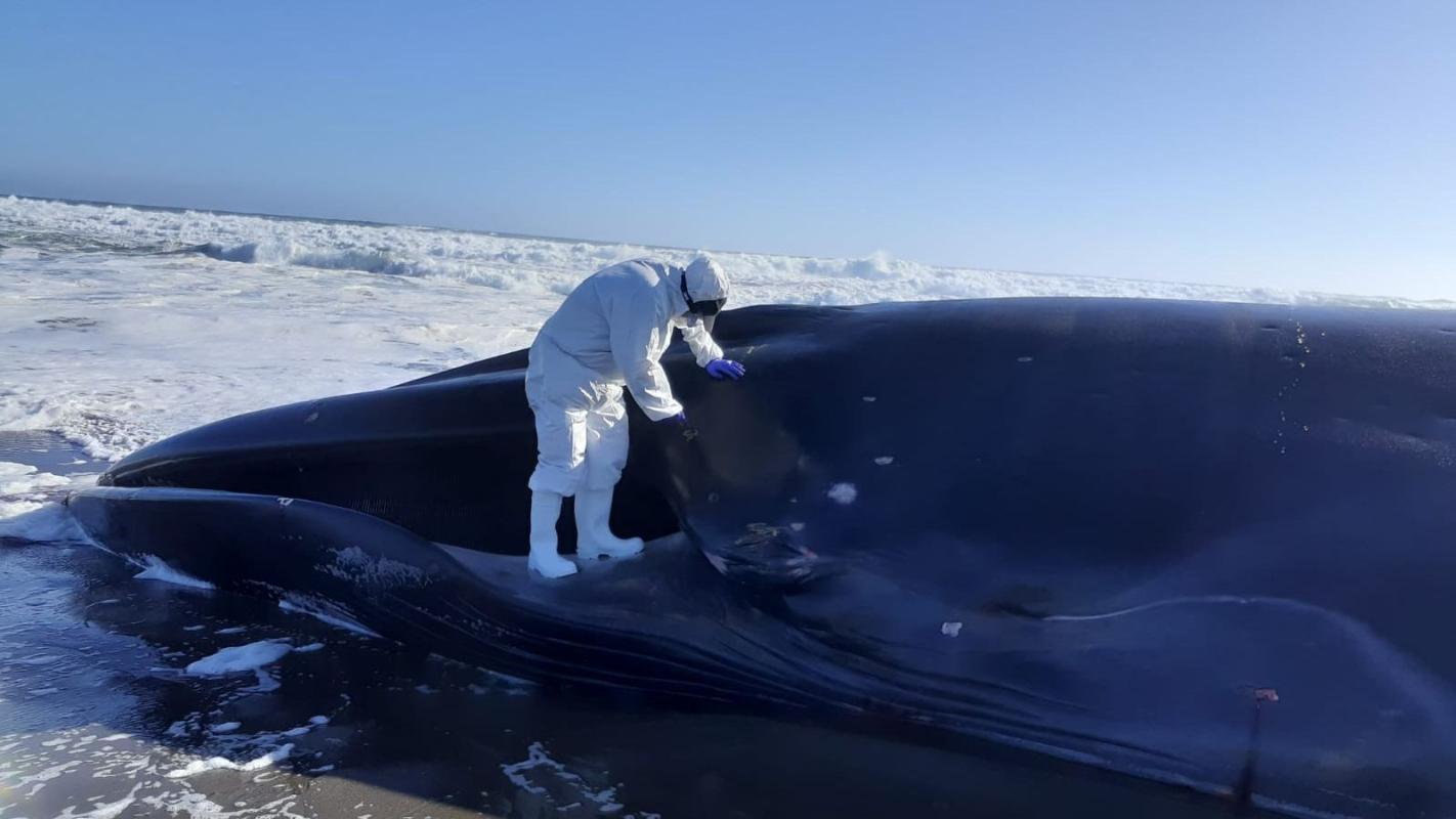 Aun así, agregó Cerda, “se logró tomar muestras de piel y de tejidos de órganos internos que comenzaron a liberarse del ejemplar, estas para análisis de laboratorio”, como los análisis genéticos y de detección de virus, incluido el de la influenza aviar. Finalmente, el 5 de septiembre se pudo enterrar al ejemplar en la parte alta de la playa, usando maquinaria pesada.