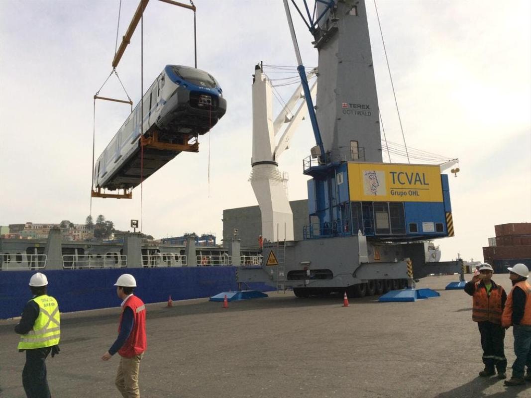 Los dos primeros de un total de ocho trenes llegaron esta mañana a Valparaíso para incorporarse al servicio de metro de esta ciudad.