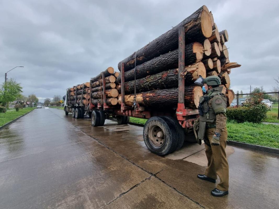 “El sujeto no mantenía la documentación para acreditar la propiedad de la madera que transportaba y en el interior del camión se encontraron dos placas patentes que al ser verificadas en los sistemas policiales informáticos arrojaron que mantenían encargo vigente por el delito de robo del 4 de marzo de 2022 de la 1ª Comisaría de Angol”, precisó el coronel Richard Gutiérrez, prefecto de Cautín.