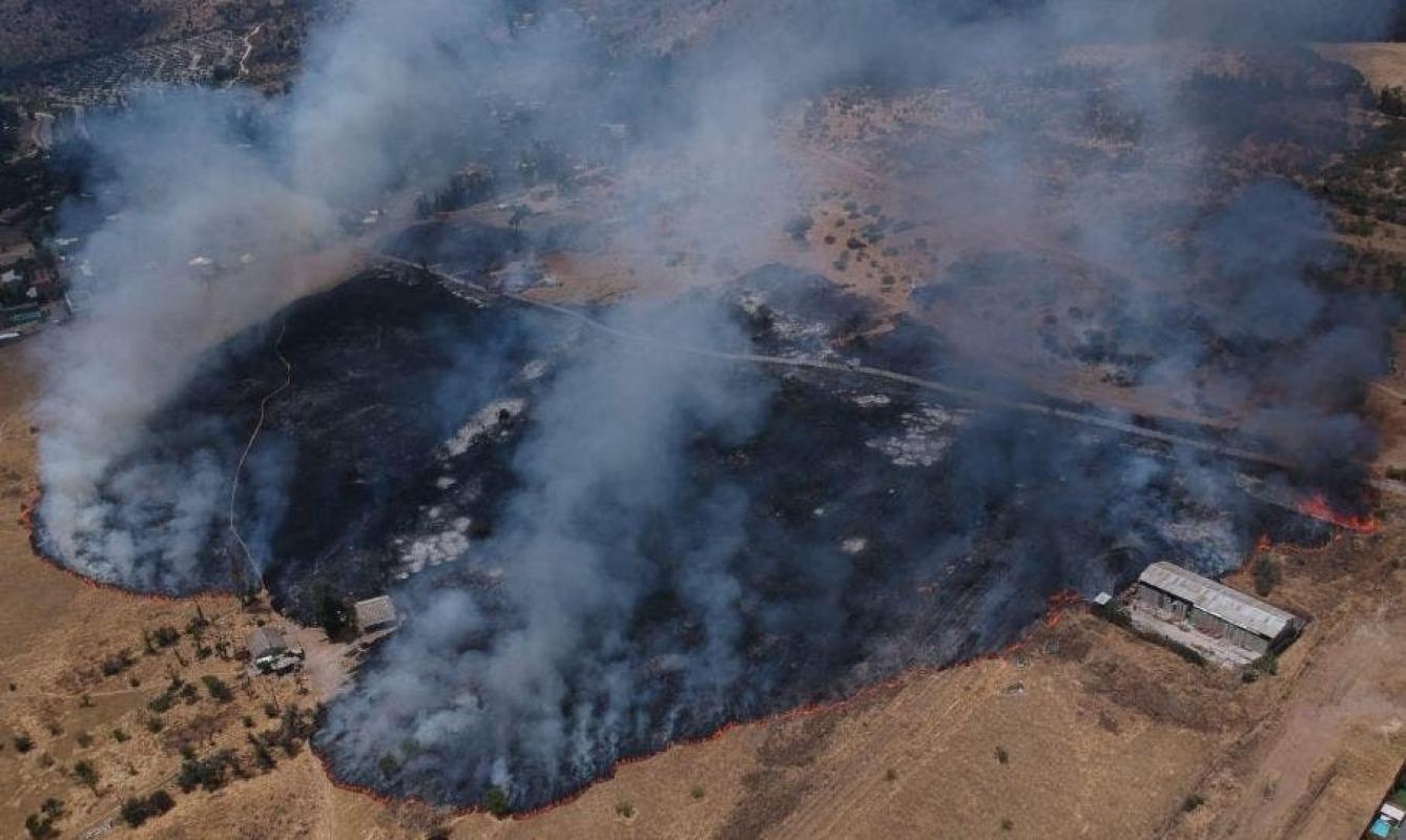 Según la información entregada por la Corporación Nacional Forestal (Conaf) un incendio forestal esta consumiendo terrenos en el sector de "El Peral" en la comuna de Puente Alto, cercano un sector habitacional.