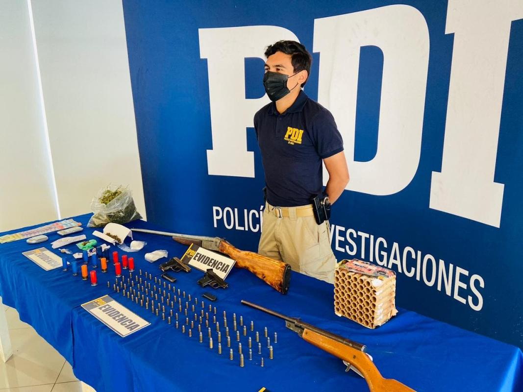 Según investigación entregada por la PDI, en el procedimiento se allanaron cinco domicilios donde se incautaron armas de fuego además de droga tras tres meses de investigación.