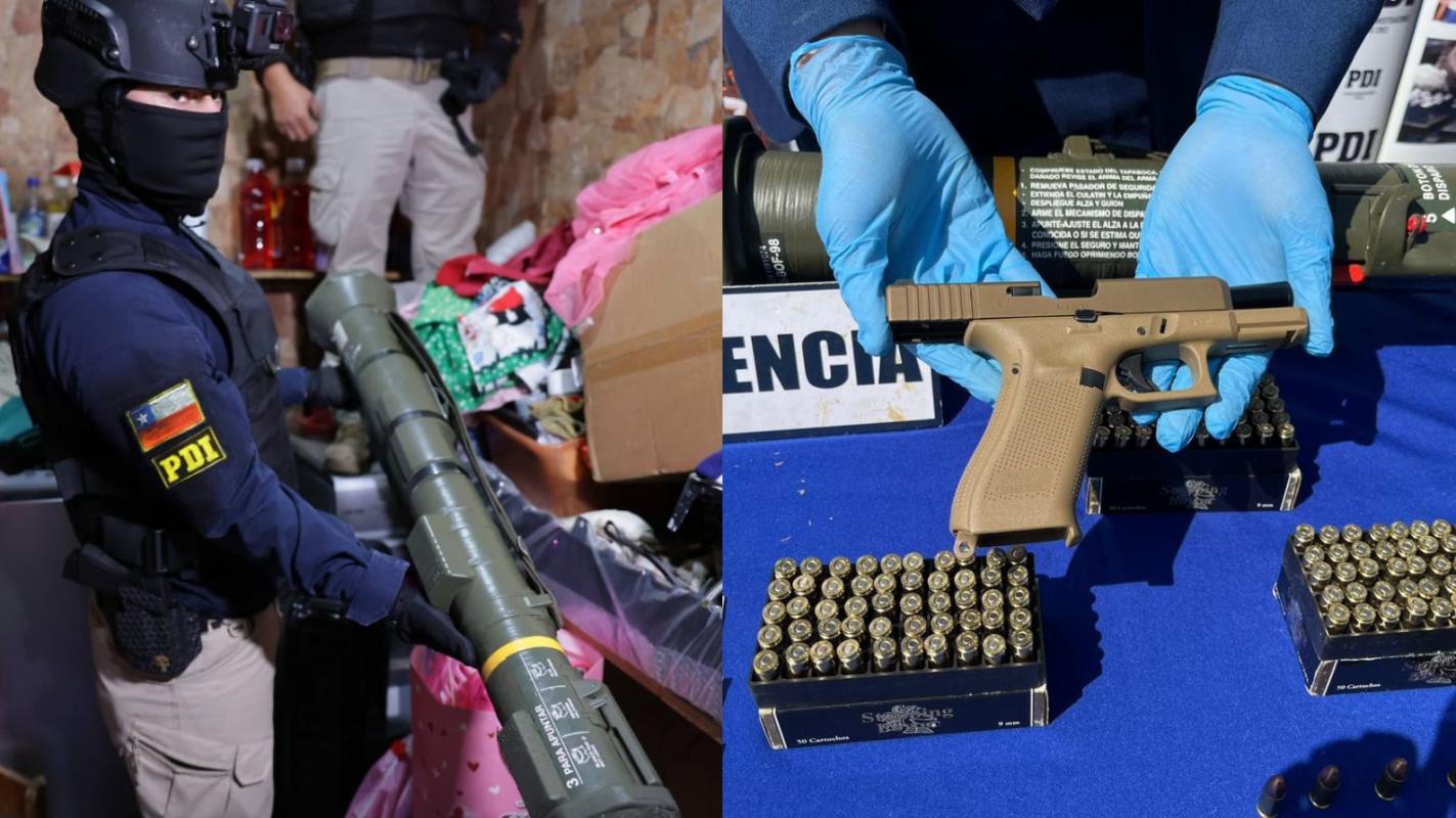 La Policía de Investigaciones desbarató a un clan familiar de Macul, Región Metropolitana, logrando la detención de 17 personas y la incautación de drogas, vehículos y armas, entre ellas una granada y un lanzacohetes.