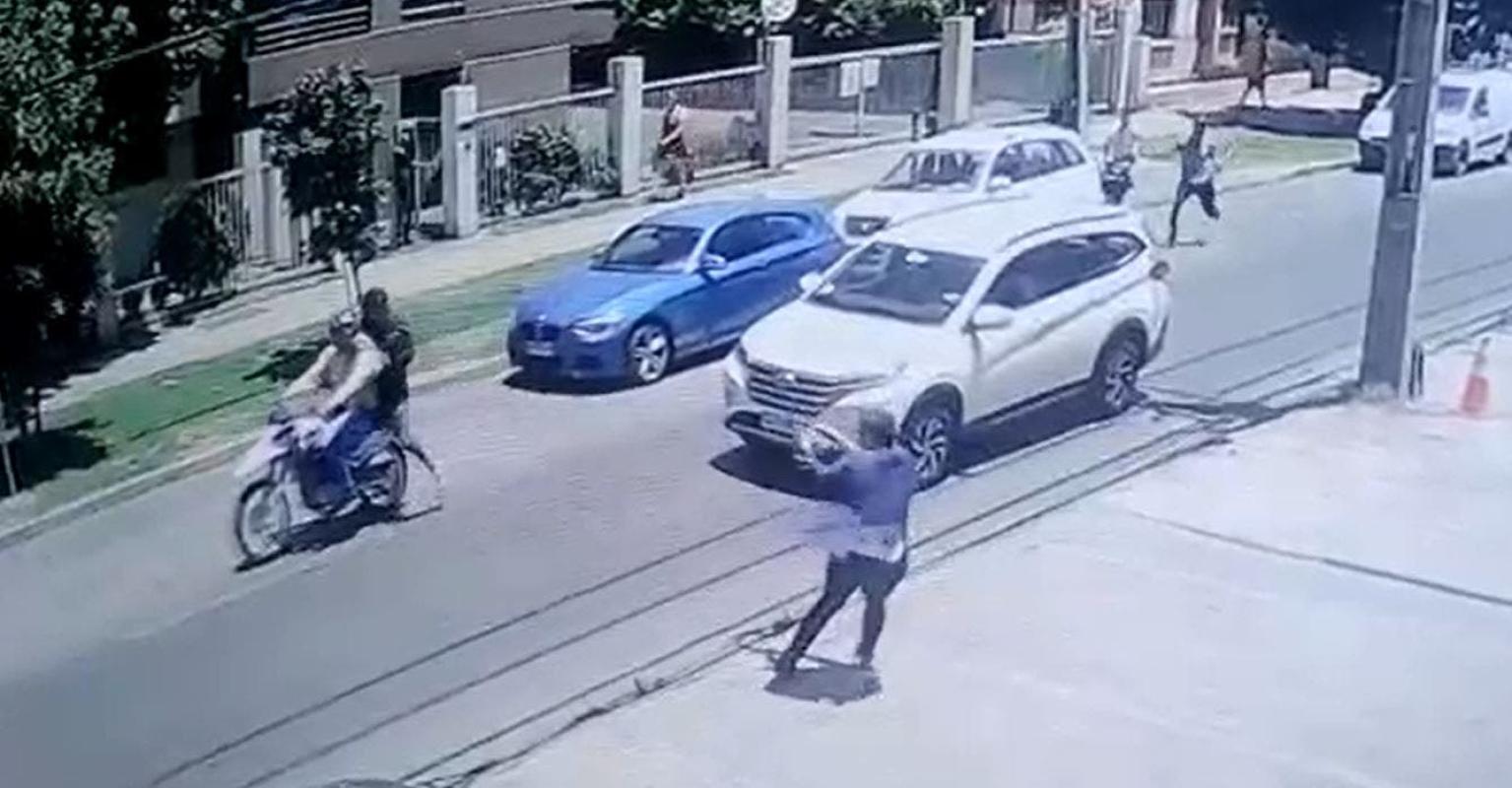 El lugar de los hechos estaba cercano a una unidad de la PDI, por lo que el hecho fue presenciado por un policía que decidió intervenir: "Un detective acude al auxilio de la víctima momento en que uno de los sujetos que huía del sitio del suceso aborda una motocicleta, quien al ser alertado por la presencia policial, exhibió y apunto con el arma de fuego al funcionario, por lo anterior el detective al ver su integridad y la de los transeúntes en peligro efectúa un disparo con su arma de servicio contra los antisociales, quienes continuaron su huida por calle San Nicolás dirección al oriente".
