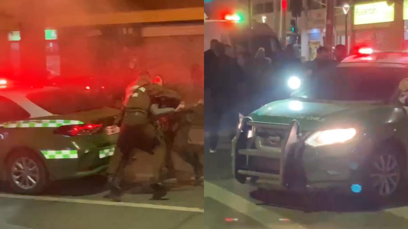 Tras chocar contra un bus del transporte público y verse acorralados por personal policial, los sujetos intentaron escapar a pie, sin embargo, fueron capturados por Carabineros.
