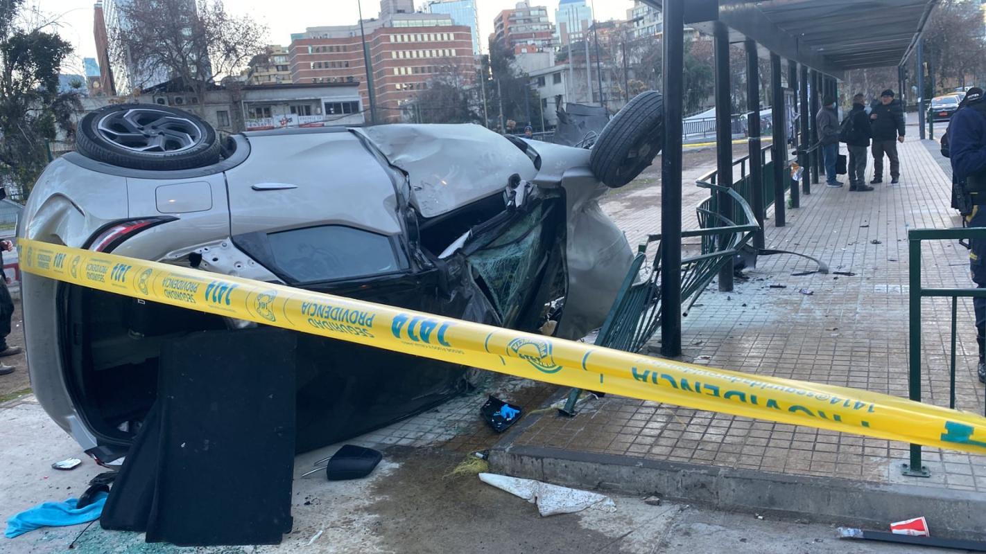 T13- Providencia: conductor ebrio volcó vehículo sobre paradero de transporte