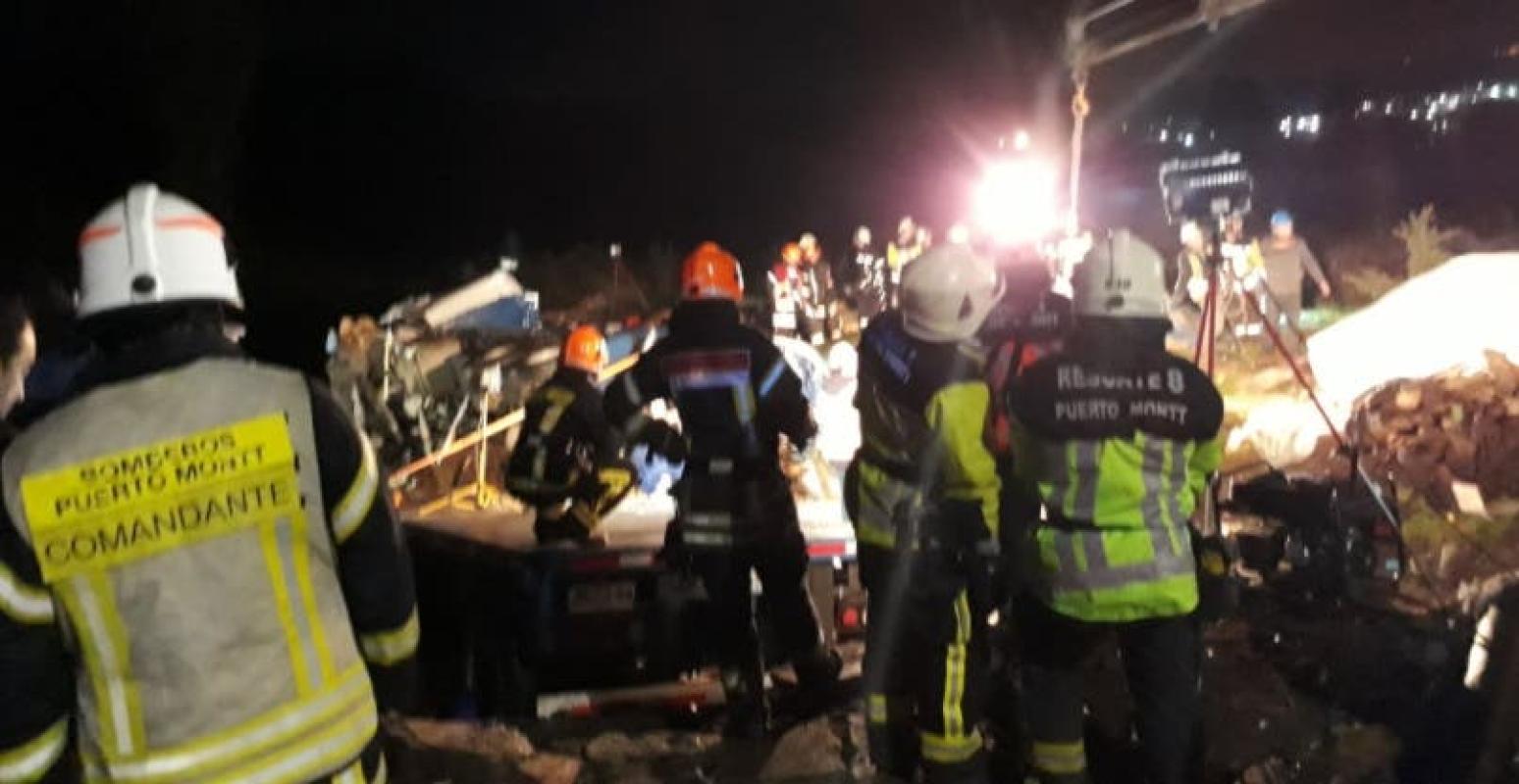 Puerto Montt: Camión volcó y cayó sobre tres viviendas en Cuesta Zúñiga
