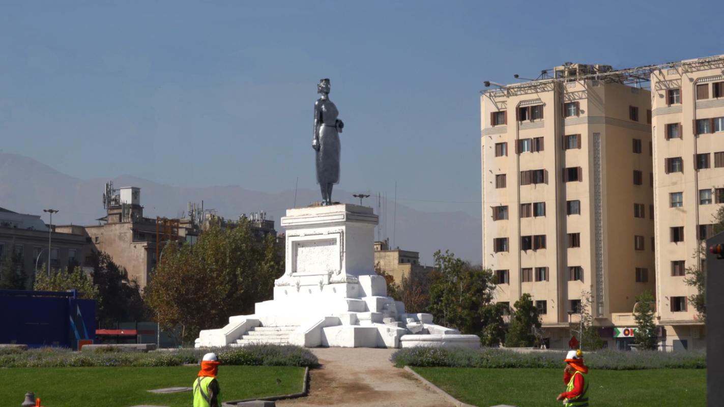 El vacío que dejó el monumento al General Manuel Baquedano en Plaza Italia fue "ocupado" por Elena Caffarena. Por lo menos, así se vio en algunos videos que se viralizaron por las redes sociales en la última semana.