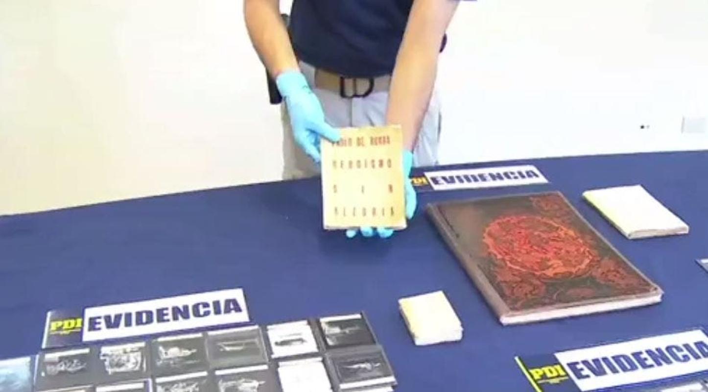 La Brigada de Investigaciones Policiales Metropolitana de la PDI recuperó los 4 libros sustraídos de la biblioteca Andrés Bello de la Universidad de Chile el pasado 3 de diciembre, y 41 imágenes en vidrio de obras de artes.
