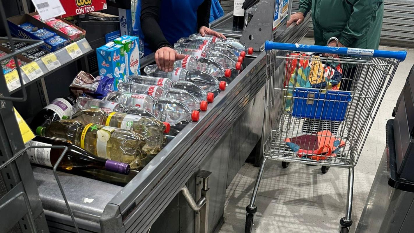 Compradores acuden en masa a comprar agua a supermercados ante posible corte de agua