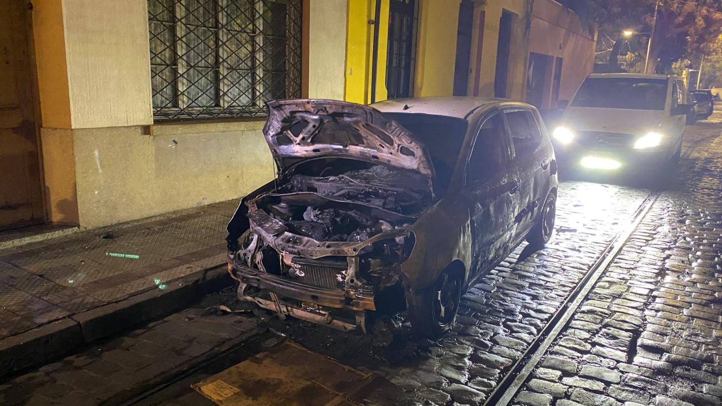 Un vehículo resultó totalmente quemado la madrugada de este domingo 4 de junio en la comuna de Santiago Centro.