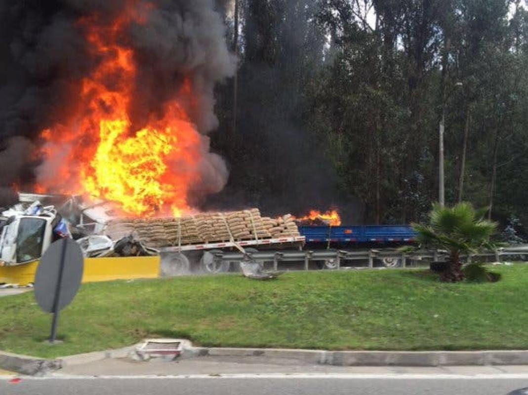 Bomberos de la Compañía España reportó el choque que posteriormente provocó el incendio de los camiones involucrados.