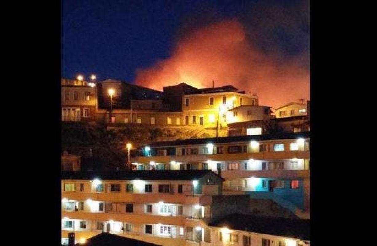 Este jueves cerca de las 20:30 horas se registró un incendio en Valparaíso, afectando los cerros Arrayán, Carampangue y Artillería.