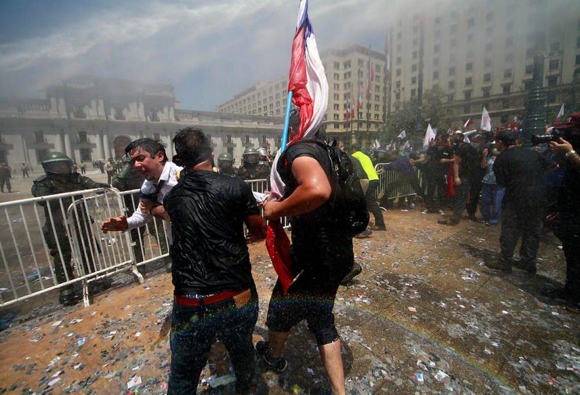 Se registran incidentes frente a La Moneda tras finalización del paro del sector público