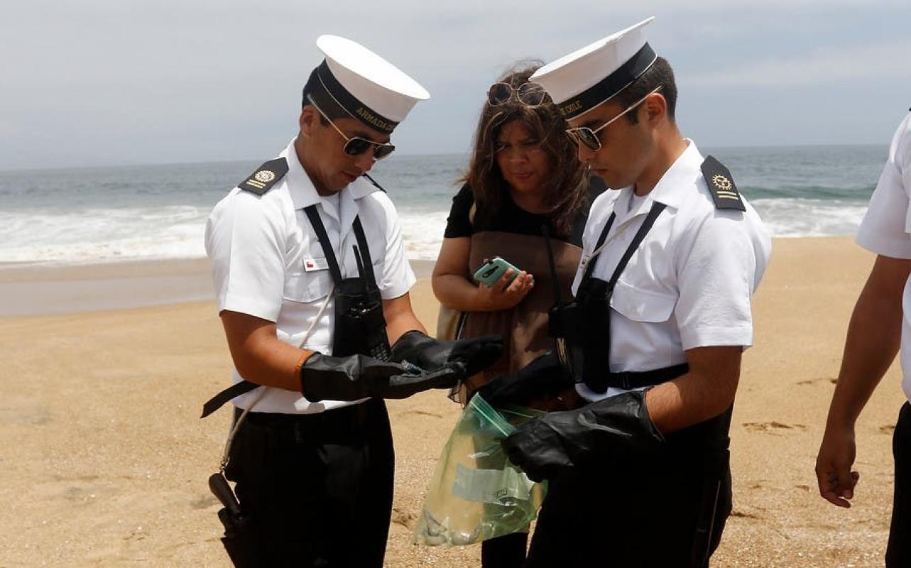 Durante la mañana de martes se decretó la prohibición de baño y actividades recreativas y deportivas en Playa Amarilla, en Concón, Quinta Región, por culpa de la presencia de la fragata portuguesa.