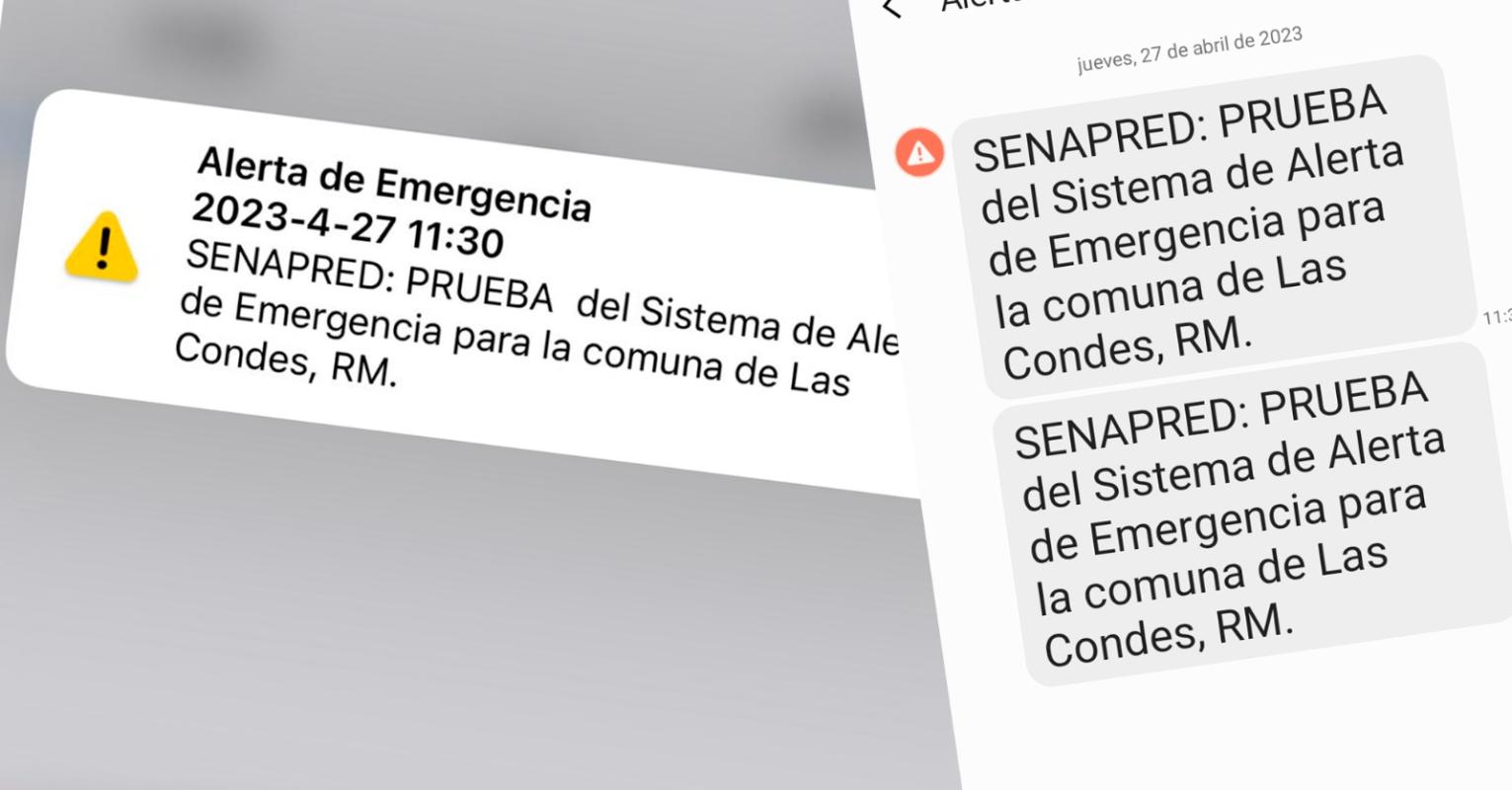 Más tarde explicaron que “debido a la ubicación de las antenas, existe probabilidad de que los sectores cercanos a la comuna de #LasCondes reciban el mensaje de prueba”.