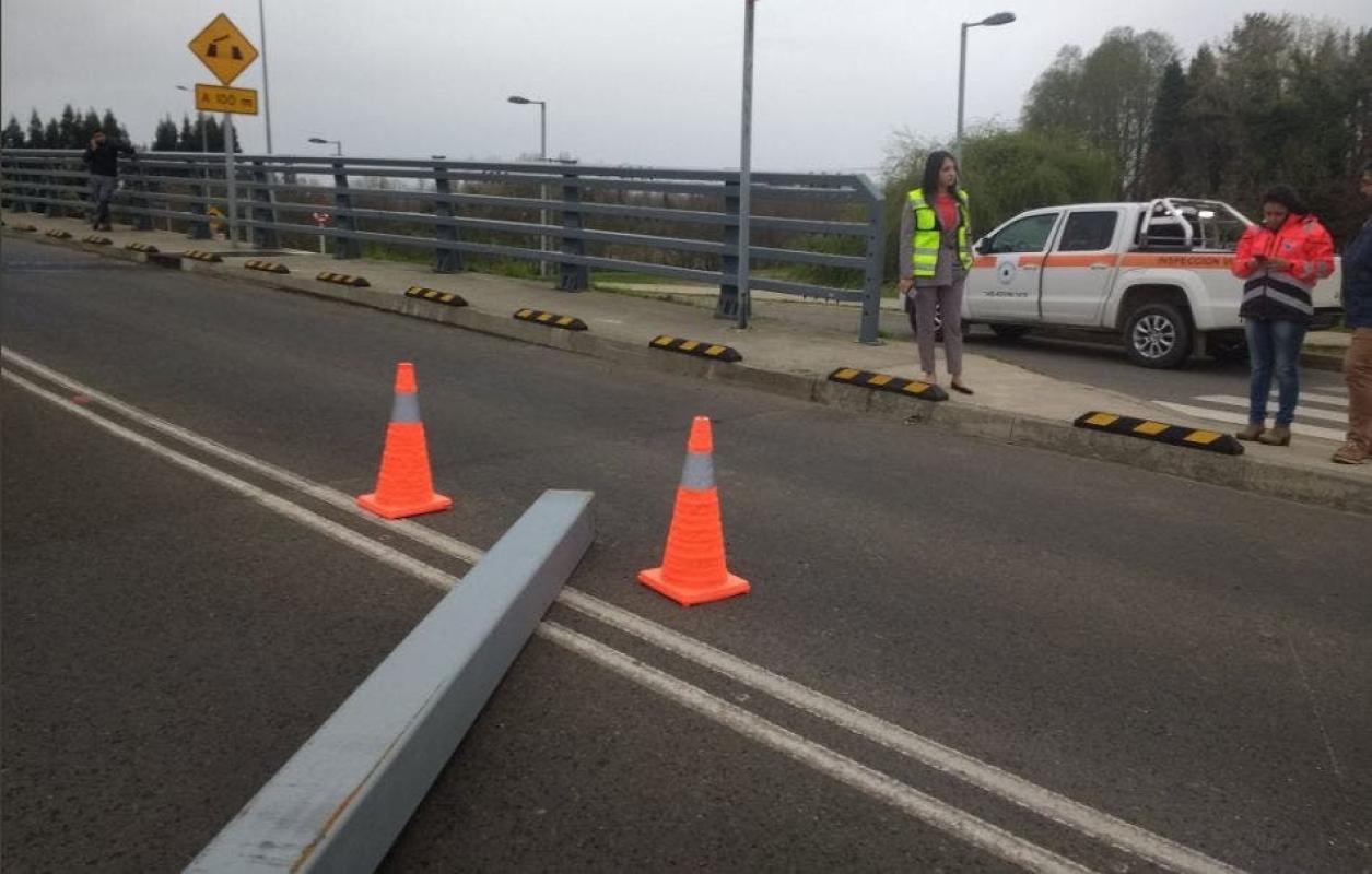 Tránsito en el puente Cau Cau fue suspendido por bus que derribó estructura metálica