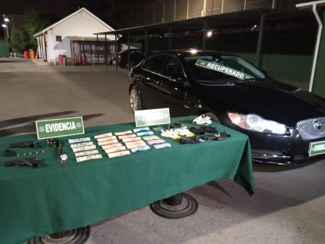 Cerca de las 21:30 del viernes, el conductor de un vehículo marca Jaguar fue abordado por tres individuos en la entrada de su casa, en el sector de Calera de Tango, los que se desplazaban en un auto marca Chevrolet Sail y utilizando armas de fuego lograron quitarle el automóvil.