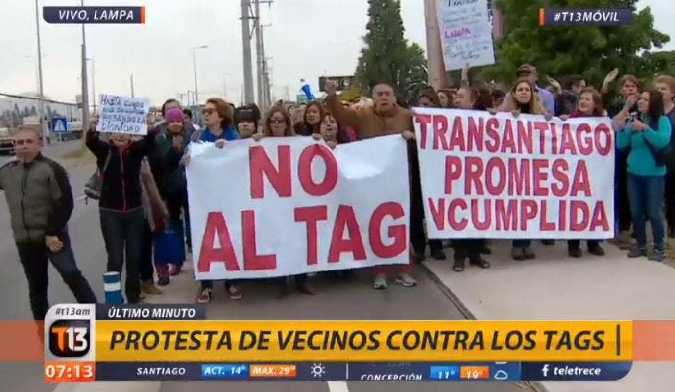 Los habitantes reclaman que en enero de 2018 se les instalarán ocho tags en la ruta 5 norte, pese a ser una de las comunas más pobres. Los manifestantes se ubicaron en la panamericana norte en el kilómetro 21, provocando un importante atochamiento vehicular.