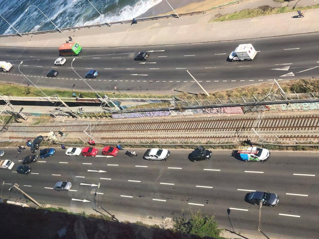 Según las primeras informaciones, el móvil cayó a la vía férrea a la altura de Avenida España, pasado el puente Capuchinos, en dirección a Viña del Mar.