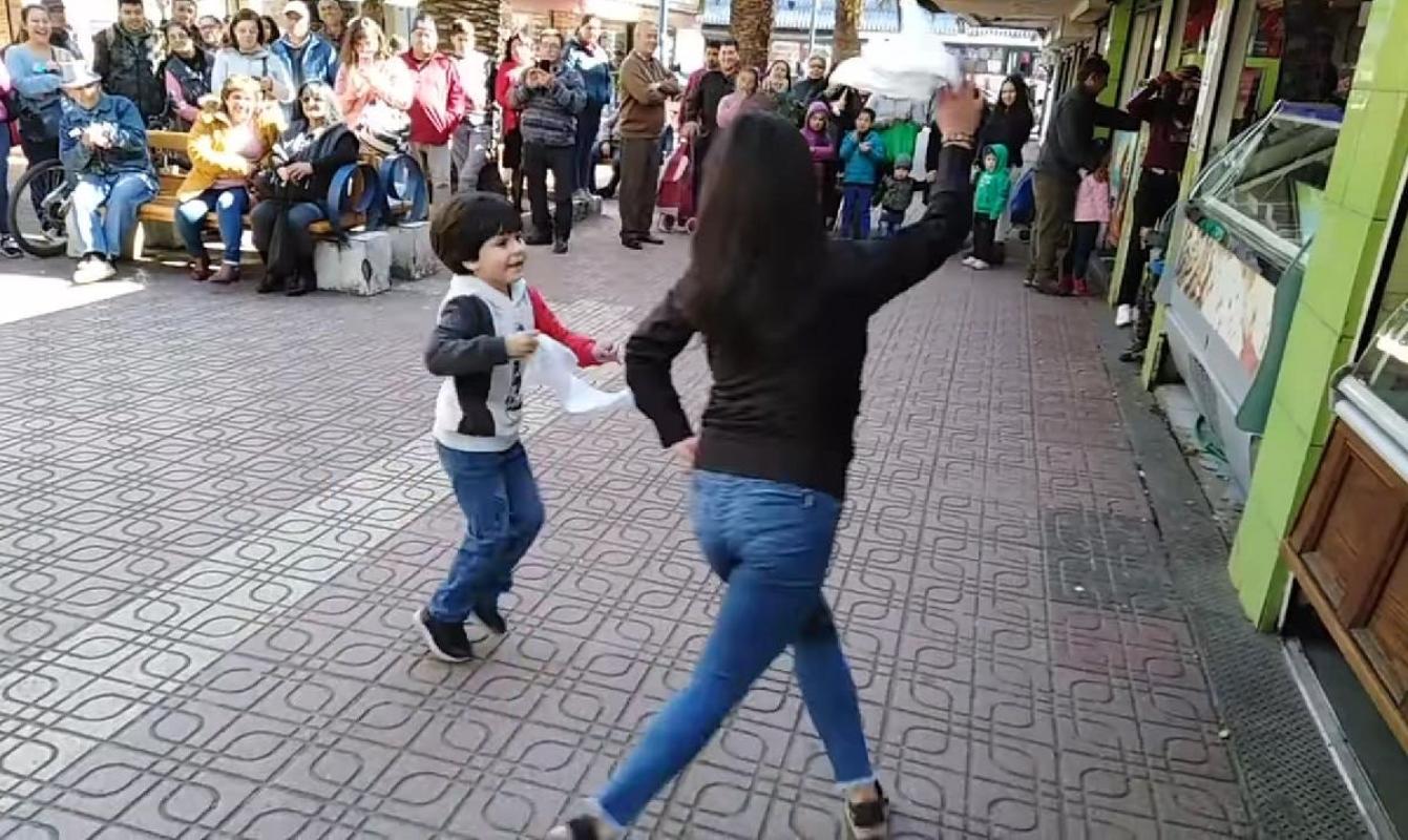 Justamente en el paseo Las Palmas de Chillán, región del Biobío, un niño se lució con el baile nacional, dejando a todos los transeúntes impresionados con su desmplante.