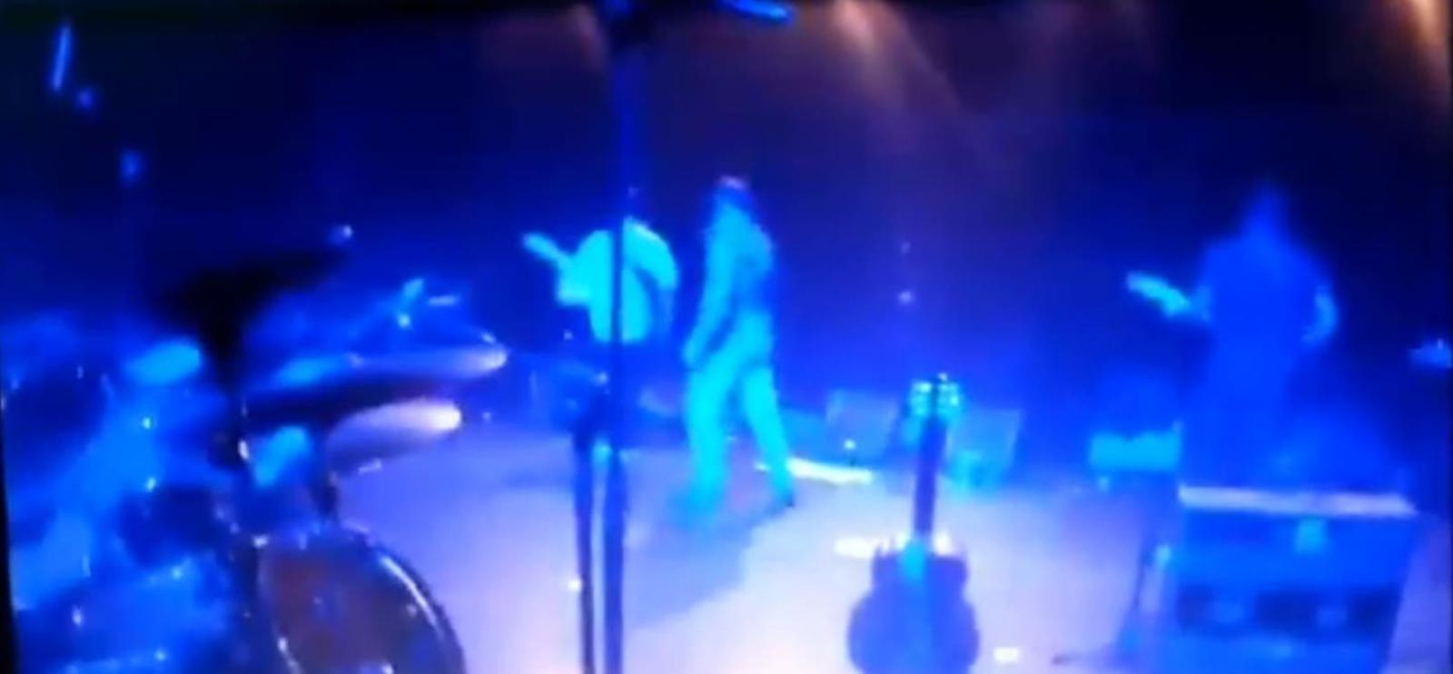 El registro fue compartido en Twitter por una integrante de la banda US+Them, quien señala que "fue tremendo, pues nosotros teníamos dificultad para bajar del escenario mientras caían partes del cielo falso".