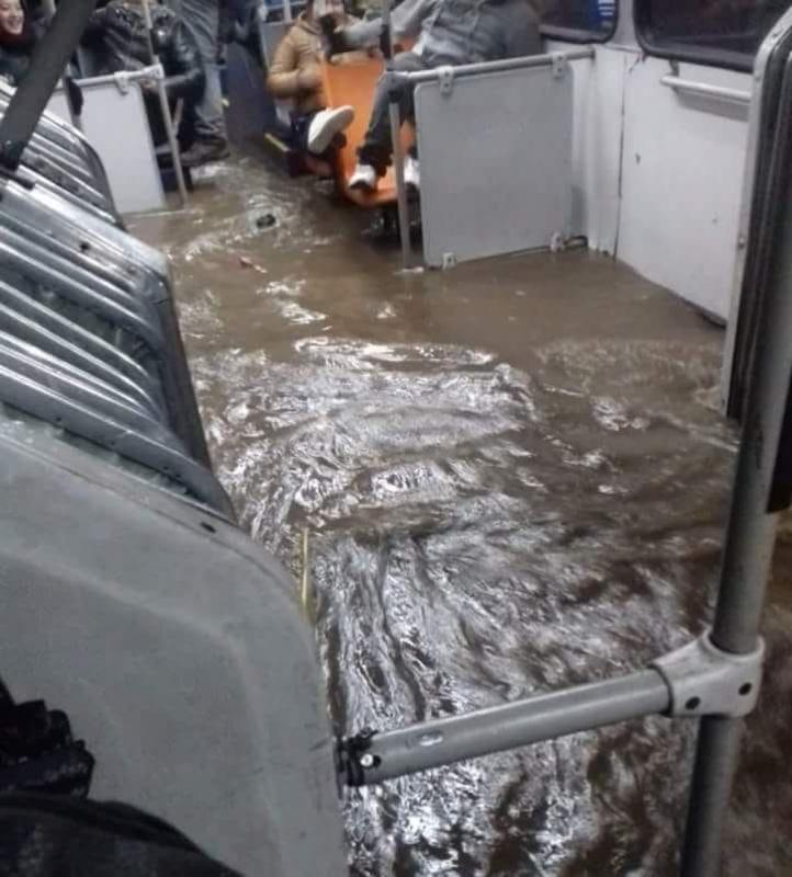 A los anegamientos ocurridos en calles, los cortes del suministro eléctrico y la voladura de techumbres por el viento, se sumaron las filtraciones de agua ocurridas en algunos buses.