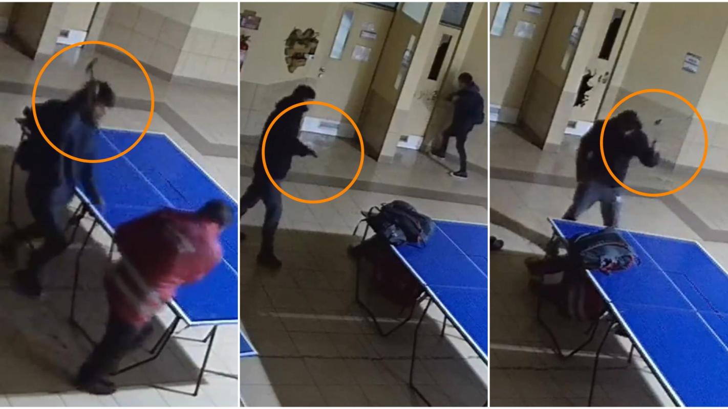 T13 - Video da cuenta de brutal asalto en colegio de Temuco: Adolescentes golpearon con pistola y martillo a guardia de seguridad | Captura de video
