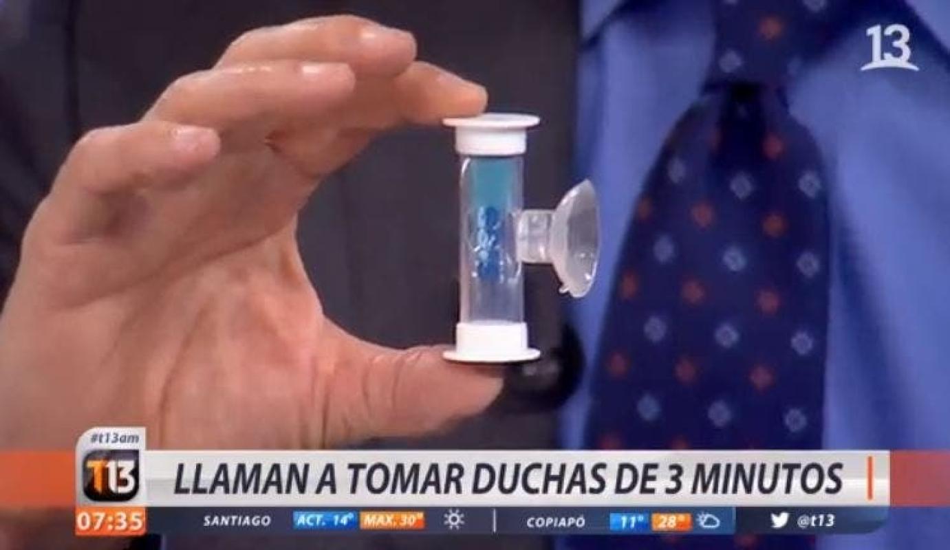 A esto agregó que "estamos lanzando un desafío, donde estamos regalando un reloj de arena que se pega en la ducha que permite que mientras va cayendo la arena uno se va duchando y la idea es que en menos de tres minutos uno pueda realizar una ducha, con eso se va a disminuir la cuenta de agua en la casa y ayudar al medioambiente, la idea es cortar el agua cuando se acaba la arena".