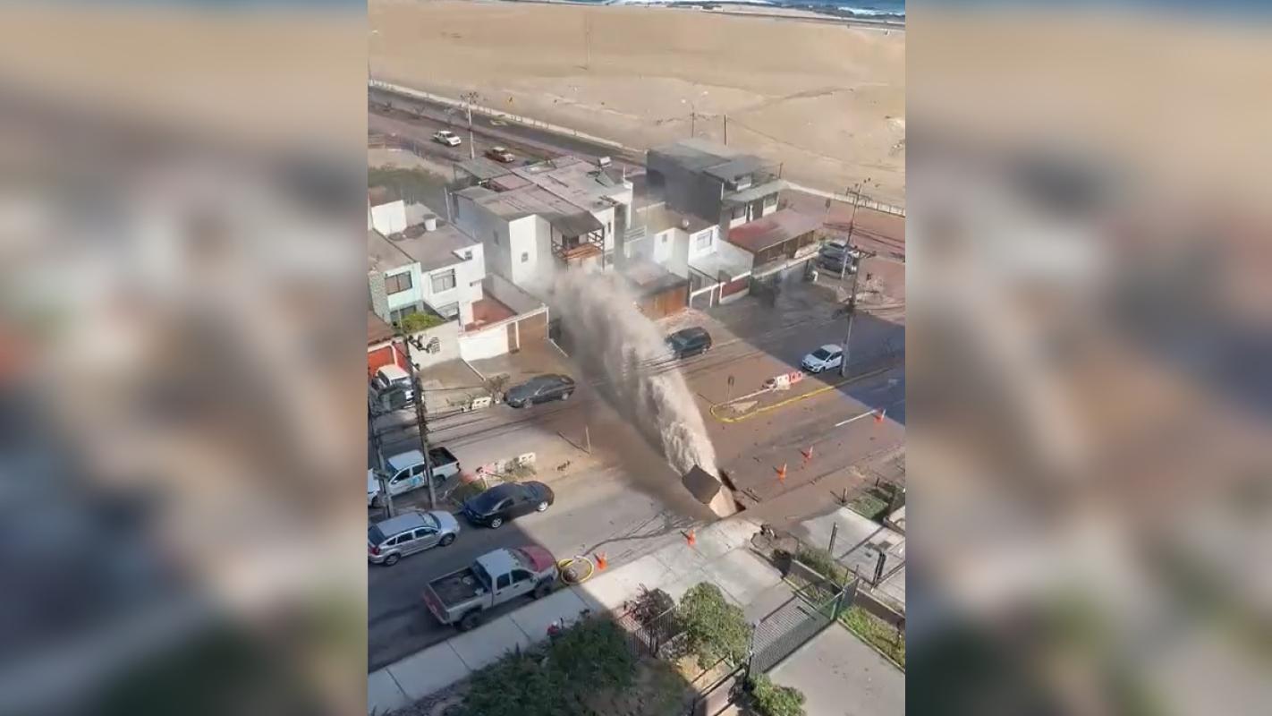 La empresa Aguas del Altiplano informó este martes una rotura de matriz en Iquique, en la región de Tarapacá.