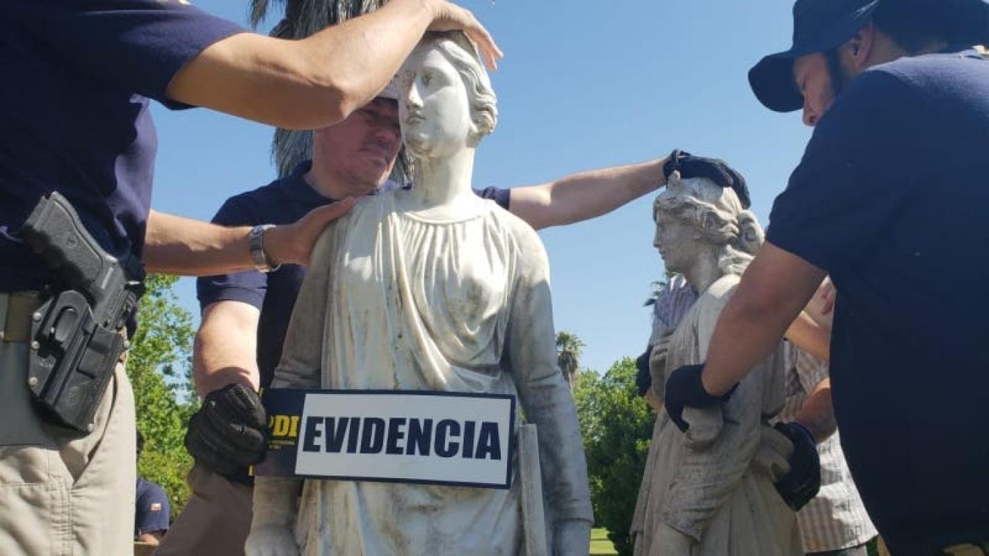 Este pasado miércoles la Brigada de Delitos Medioambientales de la PDI incautó nuevas obras de arte desde el fundo del empresario Raúl Schuler en San Francisco de Mostazal, desde donde el domingo ya se habían recuperados 11 esculturas encargados por robo.