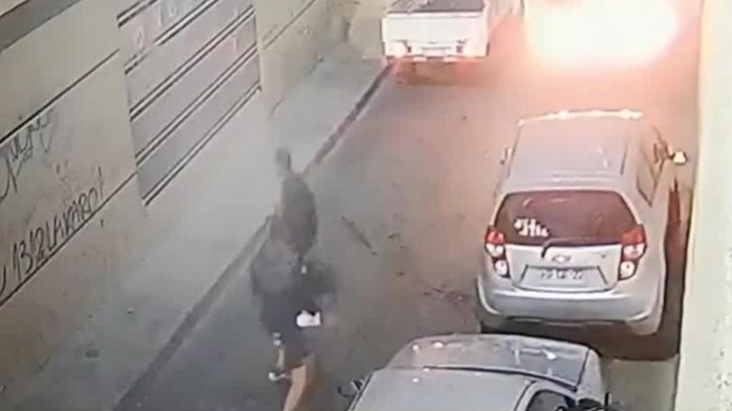 Una cámara de seguridad captó el instante en que se produce al riña, la cual se produjo en General Mackenna, cerca de las 18.00 hrs entre dos ciudadanos venezolanos.
