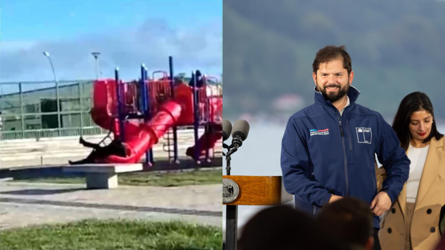 Presidente Boric quedó atrapado en tobogán